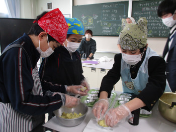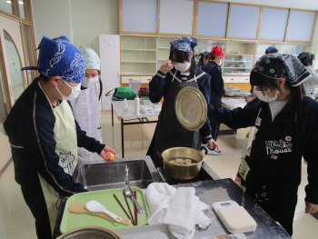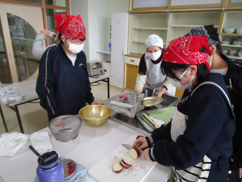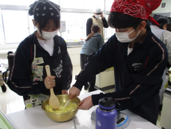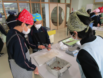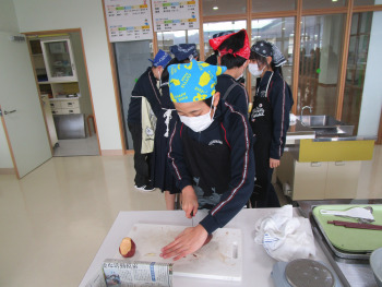 2限、家庭科室で、6年生がサツマイモを使ったスイーツ「スイートポテト」を作りました。