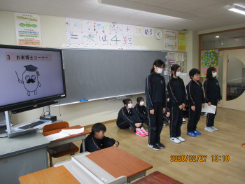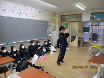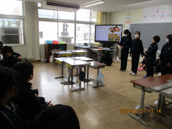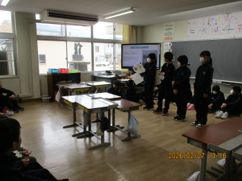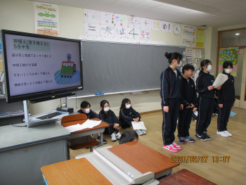 6年生が、前期課程のリーダーとして、1年間の活動や学習をまとめて発表しました。