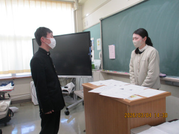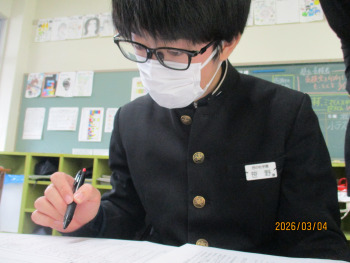9年生は卒業まで登校する日があと6日となりました。また、明日、明後日と県立高校入試となります。各教科では後期課程、最後の授業となりました。