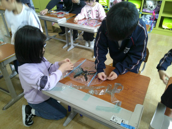 最初はうまく飛ばず、みんなでどうしたらよいか考えながら試行錯誤。