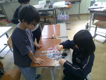 自分の好きな絵を描き、友達と協力しながらストローや紐を付け、