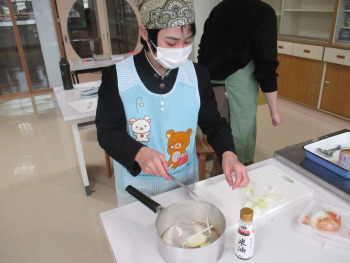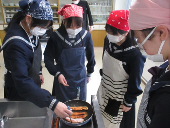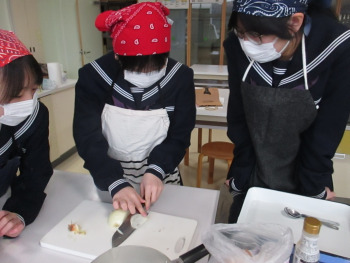 準備、調理、片付けまで全員で手際よく実習を行った7年生。