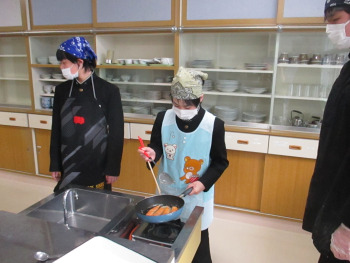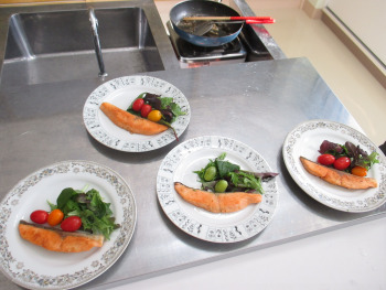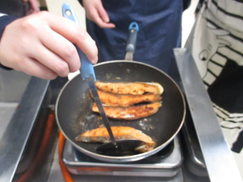 「皮目を焼かないとね!」と焼くときのポイントを確認し合いながら調理しました。