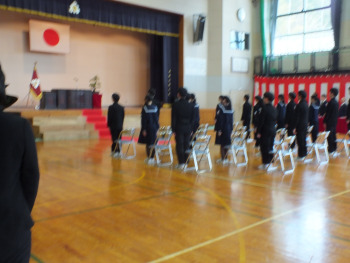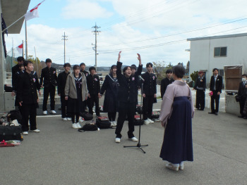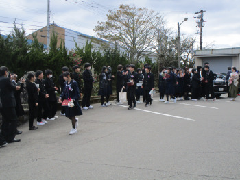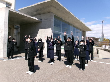 門出の式では、感謝の気持ちを込めて万歳を三唱し、在校生に見送られて、学び舎を跡にしました。