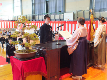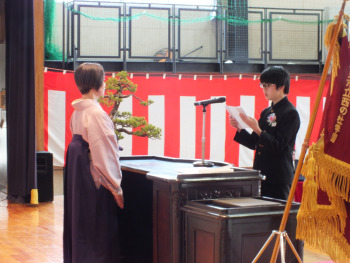 卒業生代表の答辞では、これまでの思い出を振り返り、次のステージでの決意を力強く述べました。
