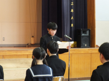 在校生の送辞では、各学年の代表と後期児童生徒会長から心温まるメッセージが贈られました。