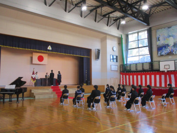 春の日差しが降り注ぐ中、卒業証書授与式が行われ、19名の9年生が旅立ちました。