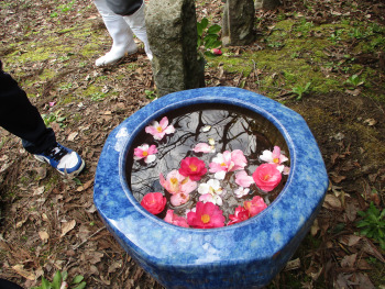 また、ツバキの花を水の上に浮かべて楽しむという鑑賞の方法も教えていただきました。