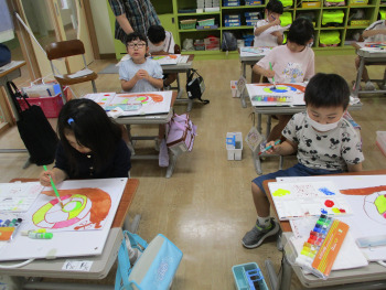 線からはみ出ないように、隣の色と混ざらないように、みんな真剣に取り組んでいます。