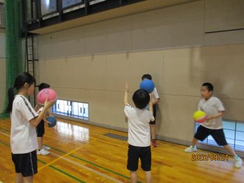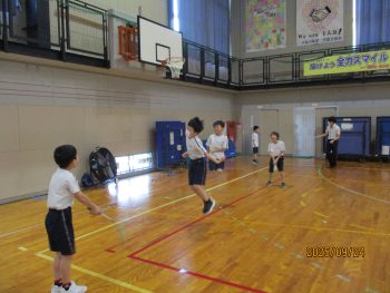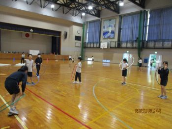 体育の学習では、学習発表会に向けて練習をしています。4年生のリーダーを中心に、各団で技の練習をしました。本番に向けて練習を続けていきましょう。