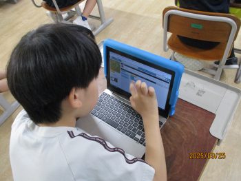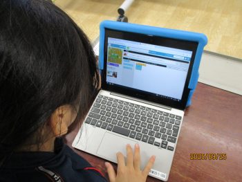 プログラミング教室が行われました。身近なところにプログラミングが使われていることに気付き、子供たちは驚いていました。