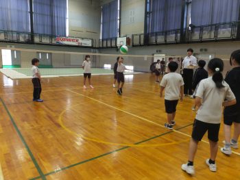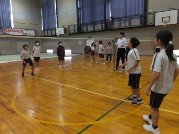 ボールを味方につなげるために、1本目をネットから離して上げたり、次につないでほしい人の名前を言ってボールを高く上げる児童もいました。