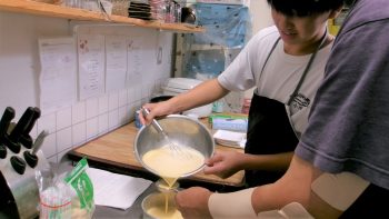 卵と混ぜて、こします。