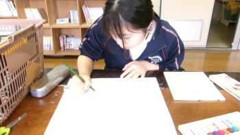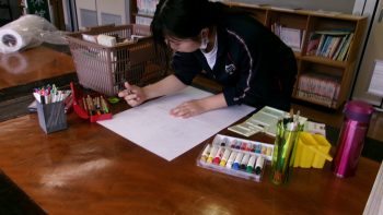 久目交流館で、来館者向けのポスターを作成しています。