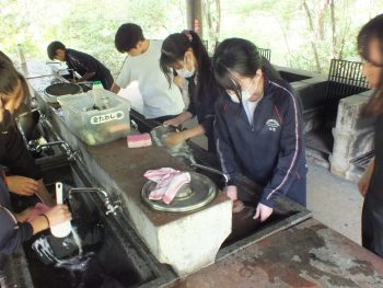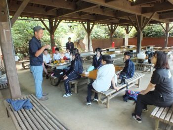 野外炊飯では、職員の方の説明を聞いた後、それぞれの班に分かれて活動に取り組みました。