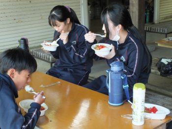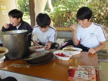 どの班もおいしいカレーライスができたので、みんなお腹一杯食べました。