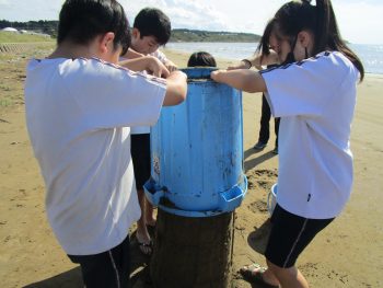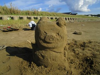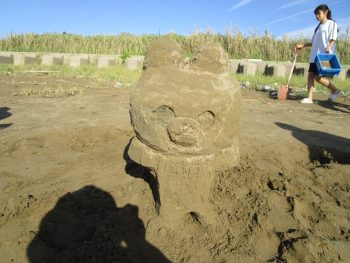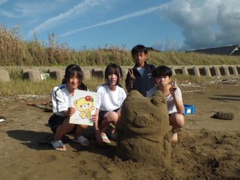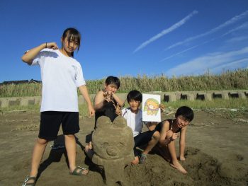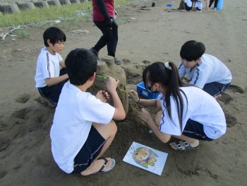 野外炊飯の後は、柴垣海岸に移動して砂像造りです。