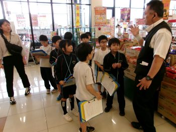 社会科の学習で「店ではたらく人」という学習に取り組んでいました。買い物にいくときはどこに行くのかから始まり、「スーパーマーケットに買い物に行くよ」という人が多かったので、スーパーマーケットについて調べました。