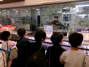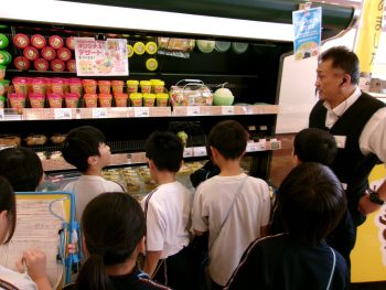 調べていく中で、「スーパーマーケットではたらく人はどんな仕事をしているのかな?」「どのように商品を並べているのかな」と疑問に思い、アルビス氷見店に見学に行きました。