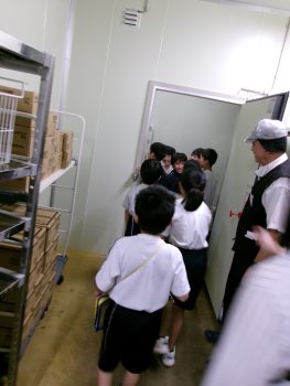 食材を保管する冷蔵庫の中にも案内してもらいました。子供たちは思った以上の寒さにびっくりしていました。