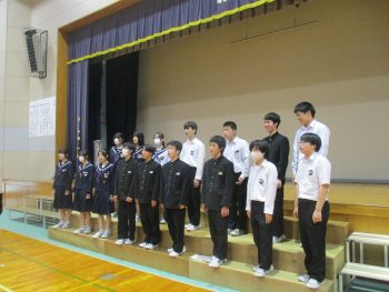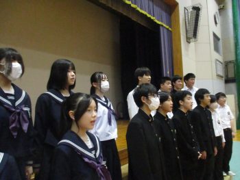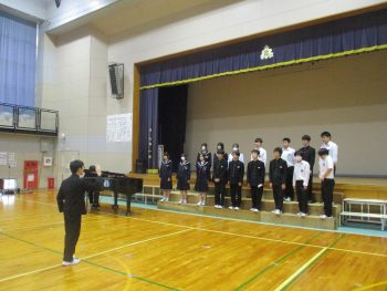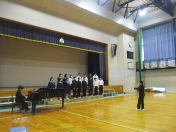 9年生は土曜日の学習発表会に向けて合唱練習をしています。