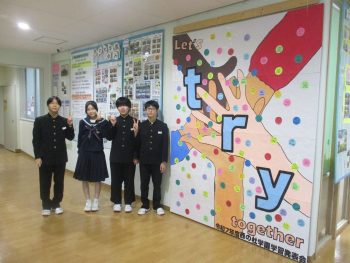 児童生徒会執行部では、学習発表会のテーマ「Let’s try together ~仲間と共に全力で挑戦~」に向けて全校児童生徒の思いを書いてもらい掲示しました。