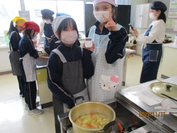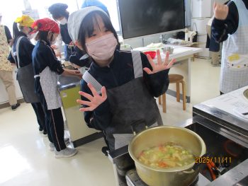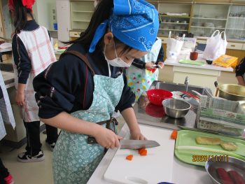 本日、講師で来ていただいたカムカムスマイルさんのおかげで、子供たちは、地産地消の食材を使って調理することの大切さに気付きました。