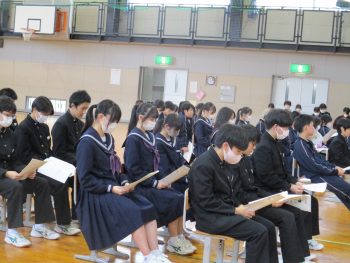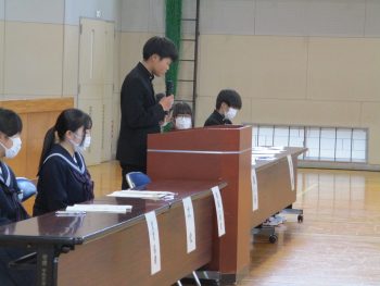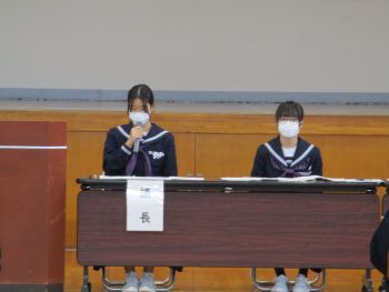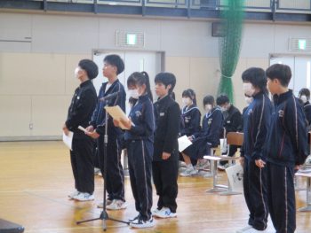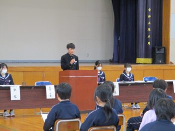 5年生以上の児童生徒が集まり、「後期児童生徒総会」が行われました。