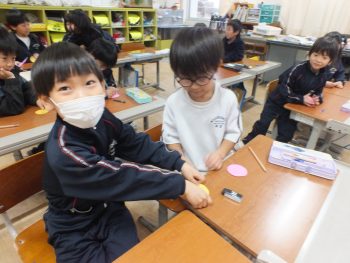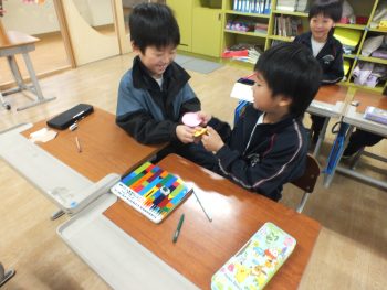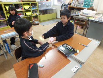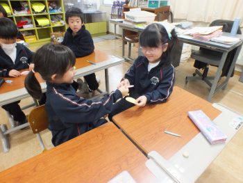 今日は、隣の席の友達のよいところや頑張ったところをカードに書きました。