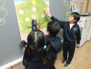友達のよいところをカードに書いて「ほかほかの木」に掲示し、「ほかほか言葉」でいっぱいにしようという取組です。