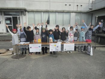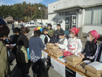 5年生児童は、速川公民館で開催された青空市で「総合的な学習の時間」で育てた米の販売体験をしました。