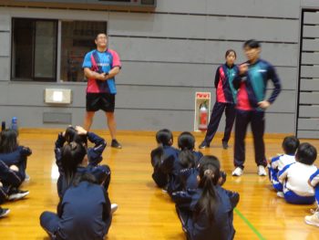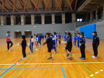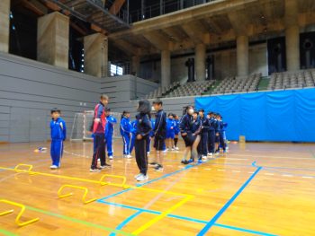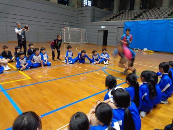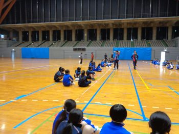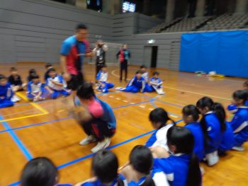 小学生用のジャベリックボールを使って、肩の使い方や、ボールのリリースポイント、助走の仕方等、教えていただきました。どんどん距離が伸びていく自分の成長に笑顔があふれていく子どもたちでした。