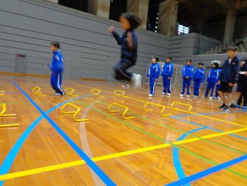 リズムよく、両手を使って、目線を上にして高く跳ぶことがポイントだと教えていただきました。