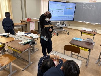 自分で練習をするときも、お手本で書いた友達のように手本をよく見て、ゆっくり書こうと全員真剣に取り組みました。