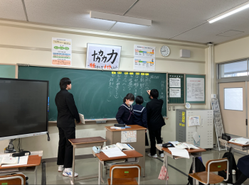 7年生の国語科の授業では、生徒が先生役となり、授業をしました。今回の学習内容は、漢字です。
