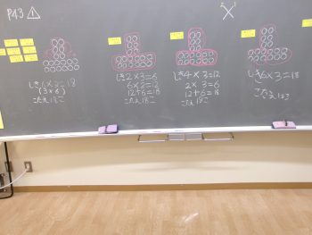 今日は、箱の中に入ったお菓子の数を、かけ算を使って求める学習をしました。