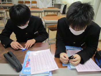 (まず、折り方を思い出すところからの生徒もいましたが)みんな真剣に折っています。
