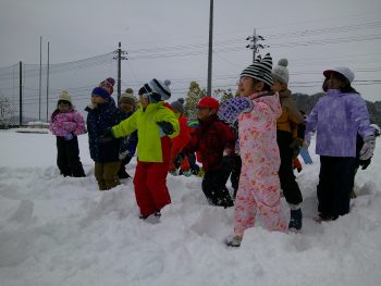 次は、雪上おにごっこ。子供たちは全力で鬼から逃げていました!