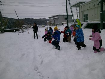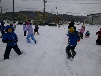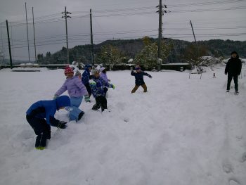 赤組対青組で対決!思い切り雪玉を投げ、みんな大満足の表情でした。