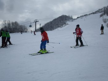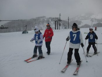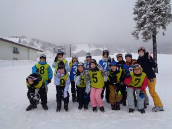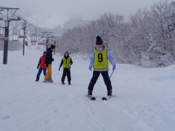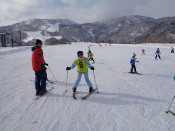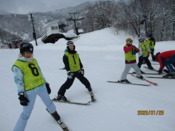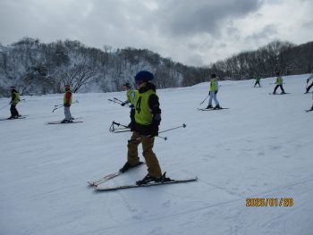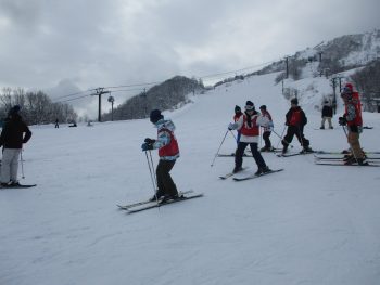 班ごとに別れて準備体操をした後、それぞれのレベルに合わせてスキー学習を開始しました。