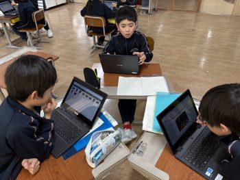 話合いの活動では、タブレットを使って友達に気付いたことを話す姿や、「これって何か分かる?」と聞く姿が見られました。