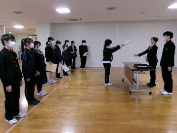 賞状伝達式を行いました。今回は、インフルエンザの感染対策のため、各教室に配信しリモートで行いました。