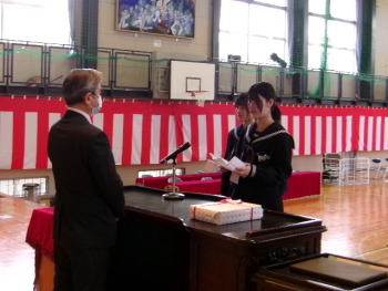 9年生 卒業記念品贈呈式、同窓会入会式(3月10日)