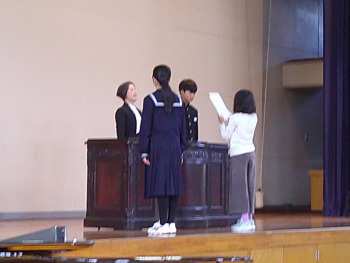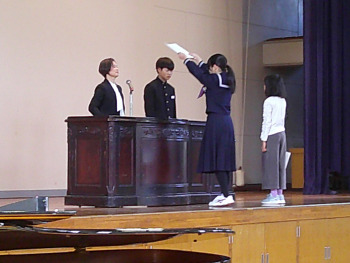 次に、前期課程代表者と後期課程代表者に修了証を渡しました。