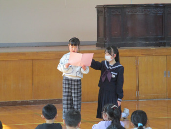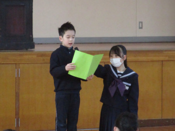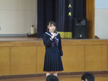 そして、1、4,8年生の代表が、3学期頑張ったことを発表しました。