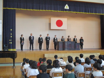 「西の杜学園の目指す児童生徒像に向けて『授業』『友達・家族・先生・自分』『あきらめない心』を大事にしてほしい。学校の決まりをみんなで守り、みんなが安心して笑顔で過ごせる学校をつくっていこう」と、お話がありました。