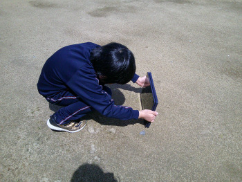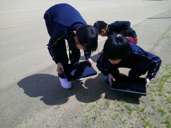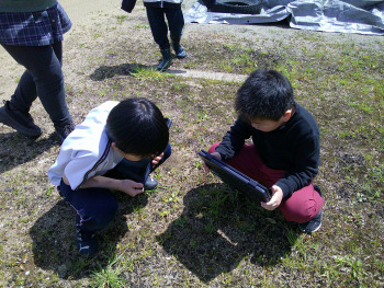 最初に、理科で学習することを確認した後、身の回りの生き物を探しにタブレットを持ってグラウンドへ行きました。