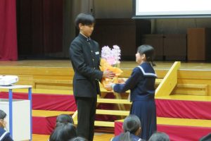 最後に1,2年生から3年生に花鉢のプレゼントがありました。