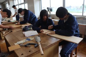 技術の時間に木材を使って本棚等の製作をします。