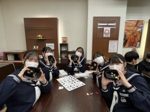 石川県観光物産館での体験活動が始まりました。加賀八幡起上り手描き体験の様子です。